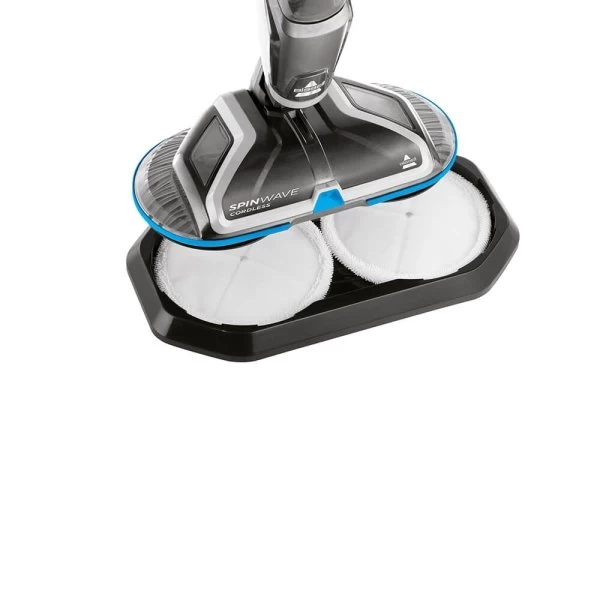 Træt af at skrubbe gulve? Lad Bissell ledningsfrie SpinWave gøre det for dig. Den motoriserede moppe til hårde gulve har nu ledningsfri bekvemmelighed! Designet til rengøring af hårde gulve som fliser, linoleum, vinylgulve og hårde trægulve. Denne alsidige maskine leveres med et sæt bløde rengøringspuder; god til daglig rengøring og skrubbepuder; til hårde, klæbrige pletter. Kraftige roterende puder reducerer rengøringsarbejdet, mens du holder hænder og knæ rene. Systemet giver dig mulighed for at kontrollere, hvor meget vand der frigives, for at anvende den optimale fugtighed på rene hårde gulve.