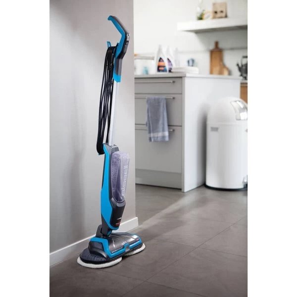 En kraftfuld elektrisk moppe fra Bissell, der er nem at bruge, som reducerer rengøringstiden med sine power spin puder. Ikke mere rengøring på dine hænder og knæ! Det delikat moppesystem giver dig mulighed for at styre hvor meget vand du vil bruge og anvende for optimal fugtighed til at rengøre dine hårde gulvoverflader. Brug den bløde touch puder til forsigtigt at rengøre hårde gulve og den kraftige skrubbepude til hårdt klæbende snavs.