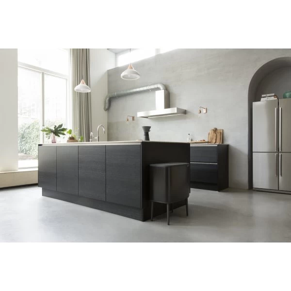 Brabantia BO er en rummelig skraldepand til affaldssortering med et moderne og elegant udtryk. Designet til at gøre det nemt og attraktivt at affaldssortere. Det gennemtænkte design gør det muligt at placere BO helt op af en væg, et skab eller i et hjørne.