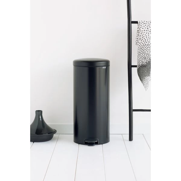 Brabantia newIcon pedalspanden er en flot kvalitetsspand med et pålideligt og moderne design. Den er lugttæt, og låget åbnes og lukkes lydløst i én blød bevægelse. Spanden er også et yderst miljøvenligt valg, idet den er produceret af 40% genanvendte materialer. Efter endt brug, kan 98% af spanden og dens emballage genanvendes. Du bidrager desuden til interesseorganisationen The Ocean Cleanup når du køber en Brabantia newIcon spand – og støtter dem i missionen om at rense verdenshavene for plastik.