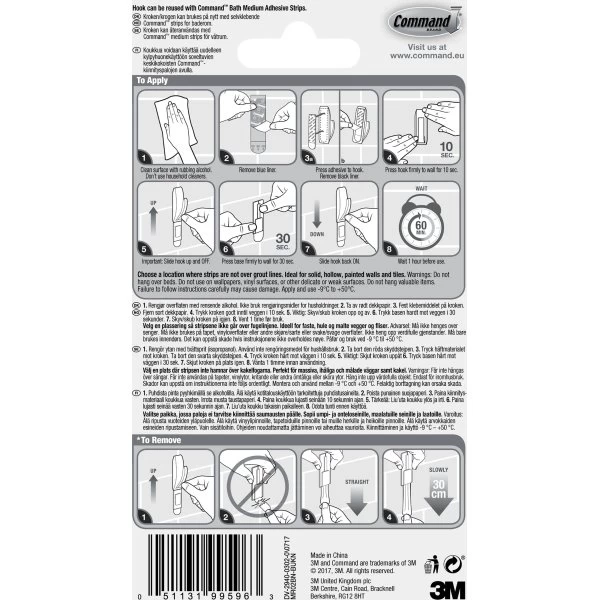 Command er en ny og avanceret teknologi indenfor klæbestrips, som klæber rigtig godt og som nemt kan fjernes uden spor med et enkelt stræk i strippen. Command klæbestrips har en stærk bæreevne og findes i mange varianter og størrelser, som altid sikrer dig en skadefri ophængning, uden brug af værktøj og andre hjælpemidler, selv på overflader der ellers kan være svære at klæbe på.