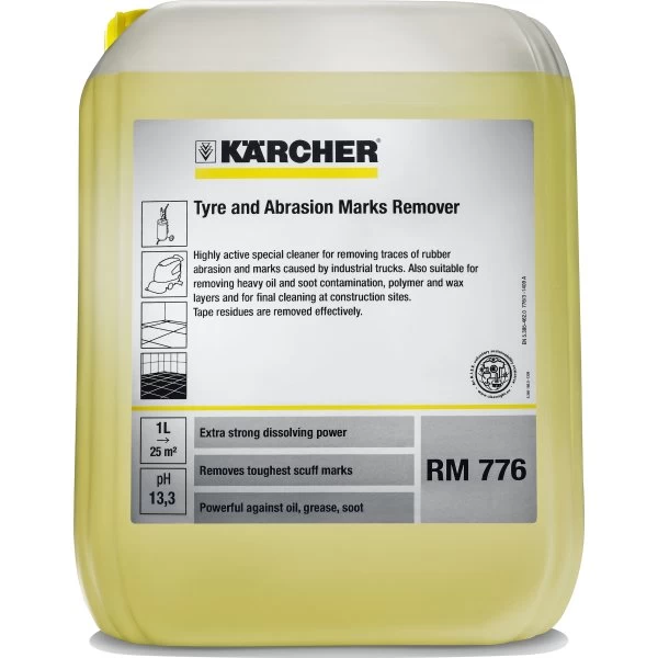 Kärchers rengøringsmiddel RM756 er særdeles kraftig rengøringsmiddel til at fjerne spor efter gummihjul og mærker efter kørsel med truck. Fjerner også snavs som olie og sod samt polymer- og voksbelægninger.