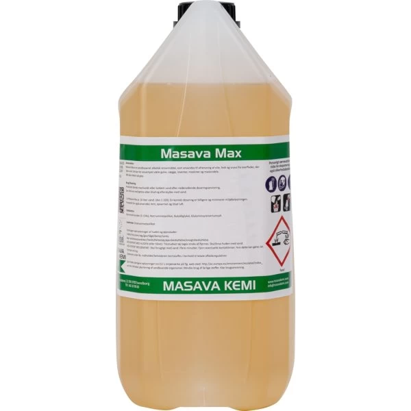 Masava Max er et kraftfuld vandbaseret alkalisk affedtningsmiddel, der er specielt udviklet til brug på skibe og borerigge i den norske del af Nordsøen – og som også har mange anvendelsesmuligheder på land. Dette alsidige produkt anvendes til effektiv fjernelse af olie, fedt og andet snavs fra gulve, vægge, tæpper, inventar, maskiner, maskindele, filtre og andre overflader, der tåler vand. Rengøringsmidlet kan også benyttes som et effektivt grundrensemiddel inden maling.