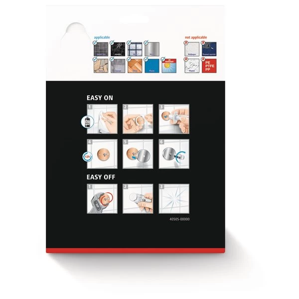 - Borefri og ubesværet fastgørelse – kan fjernes uden af efterlade spor