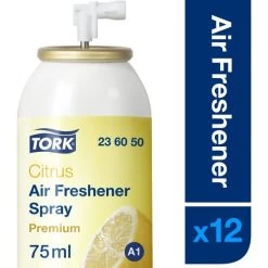 Luftfriskeren passer i Tork A1 Dispenser til luftfrisker spray, og en sprayflaske giver 3.000 afmålte doseringer. Duften er designet til at holde i 24 timer, så du kan være sikker på et behageligt toilet- eller arbejdsmiljø.