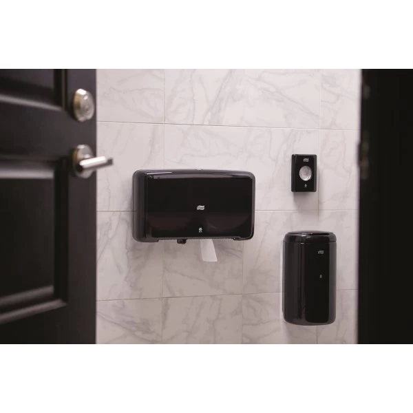 Affaldsspand fra den moderne og funktionelle Tork Elevation serie, som giver en positiv og ubesværet oplevelse for kunderne. Skraldespandens lille og handy størrelse gør den oplagt til almindeligt affald på mindre toiletter, når pladsen er begrænset. Den kan også bruges som hygiejnespand ved toilettet, på grund af den lille størrelse.