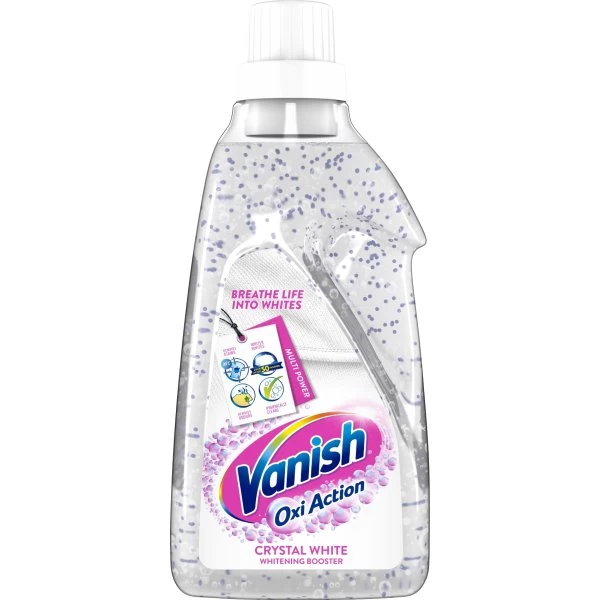 Vanish Oxi Action Crystal White Gel fjerner effektivt alt fra de vanskeligste pletter som tydeligt kan ses til dem der kan være gemt dybt inde i stoffet – tilsæt blot Vanish ved hver vask for en ren og pletfri tøjvask hurtigt og nemt. Stol på pink og få hvidere hvidt!
